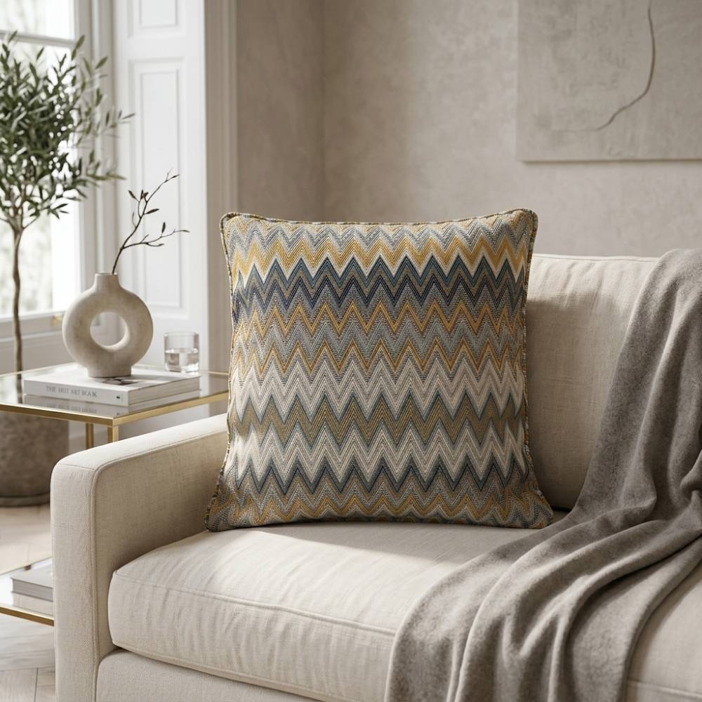 Zigzag desenin enerjik geometrisi ile dokuma kumaşın doğal ve güçlü dokusu birleşerek mekâna modern ve zamansız bir stil kazandırır. Bu özel tasarım kırlent, minimal, modern ve klasik dekorasyon stilleri ile uyum sağlayan estetik bir bütünlük sunar.