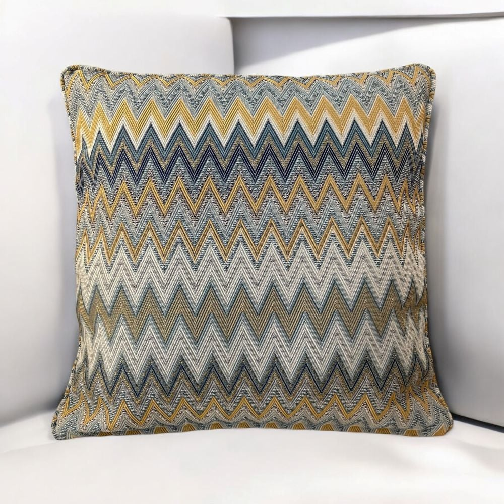 Zigzag desenin karakteristik ritmi ile dokuma kumaşın zengin dokusunu buluşturan bu özel tasarım kırlent, yaşam alanlarına modern ve dikkat çekici bir stil kazandırır. Desen geçişlerindeki dengeli yapı sayesinde bu kırlent, mekâna hareket ve derinlik katarak dekorasyonda güçlü bir tamamlayıcı olarak öne çıkar.
