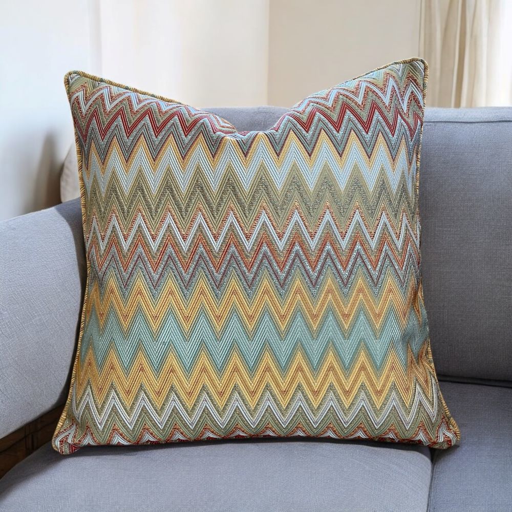 Zigzag Desenli Mavi Hardal Renk Dokuma Kırlent